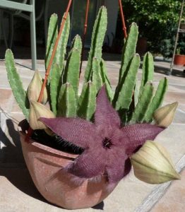 Las flores se agrupan en varios verticilos superpuestos de flores amarillas bilabiadas de 2 cm. Las flores amarillas muestran un gran casco cilíndrico que protege una garganta con vetas de color rojo brillante. Son melíferas.