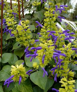 – Trachelospermum jasminoides Variegata, follaje abigarrado, planta menos vigorosa y menos florífera que el tipo especie