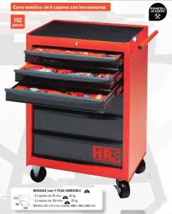 - Ruedas de goma con casquillo metálico que facilita su uso y duración