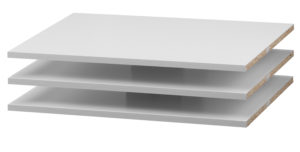 - 5 Estantes que pueden ser dispuestos a la altura deseada. Las baldas están fabricadas en tablero de MDF ecológico (clase E1).
