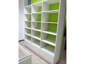 - Estantería metálica: fabricada en acero galvanizado y tableros MDF (fibra densidad media).