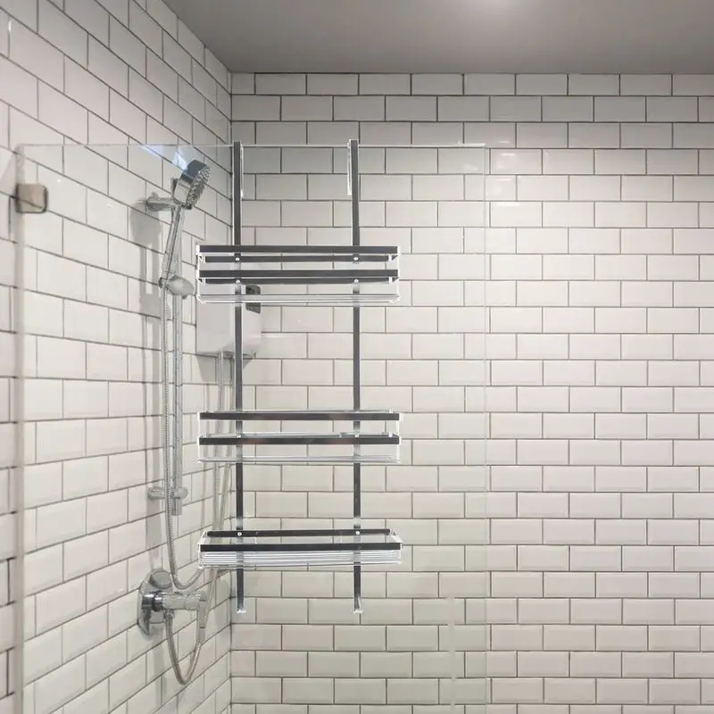 - Duradero: adhesivo resistente al agua, no suelta la superficie lisa como vidrio o azulejos. Su alta capacidad de carga es ideal para estantes de ducha. Y las vallas altas son eficaces para evitar que las botellas más grandes se caigan. Superficie lisa y sin rebabas y esquinas redondeadas que garantizan que no dañe tu mano