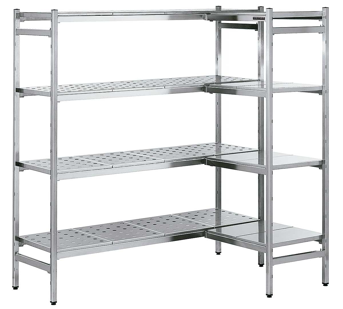 - Estantería estable para cargas pesadas completamente de acero inoxidable. El acero inoxidable utilizado hace que la estantería sea extremadamente estable y también garantiza una fácil limpieza de los estantes.