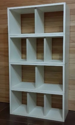 - Estantería original y moderna con diseño de líneas rectas, ideal como librería para el salón o la zona de despacho, diseño de 3 columnas con baldas asimétricas.