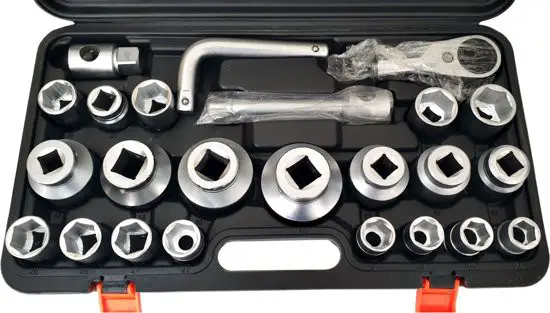 - Llaves de vaso, entrada 12,5 mm (1/2"): 8 - 9 - 10 - 11 - 12 - 13 - 14 - 15 - 16 - 17 - 18 - 19 - 20 - 21 - 22 - 24 - 27 - 30 - 32 - 34 - 36 mm
