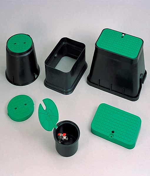 - Arqueta de riego para facilitar el acceso a las electroválvulas u otros elementos en un sistema de riego automático.