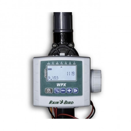 - Más fácil de programar Se puede acceder a las funciones más habituales de programación desde la misma pantalla, lo que facilita y agiliza la programación. Se instala en cualquier parte El WPX se puede instalar prácticamente en cualquier parte. La carcasa impermeable garantiza una larga vida útil incluso si se instala en una arqueta enterrada. Mayor duración Puede funcionar durante un año aproximadamente con una pila alcalina de 9 voltios, o bien durante dos años con dos pilas alcalinas de 9 V