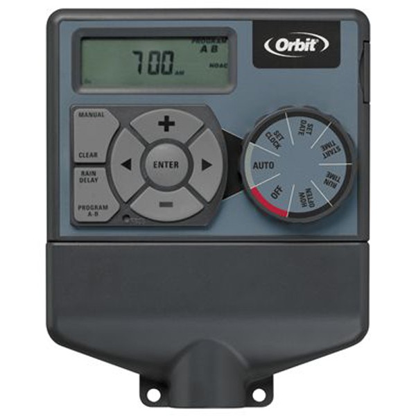 - Programador de riego automático orbit easy-set logic para 6 zonas de riego; uso interior y exterior ya que cuenta con un armario impermeable con tapa y cierre con llave; cuenta con una pantalla LCD digital y botones más grandes para una programación más sencilla que otros modelos