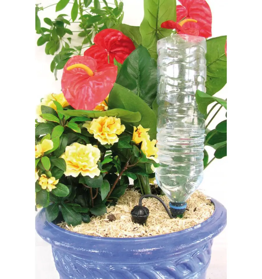 - Nuestro sistema de riego automático de plantas adopta un diseño de interfaz enchufable inclinado e inverso, que es compatible con botellas de bebidas de 1.1 pulgadas. El sistema de riego automático de macetas es una buena ayuda para la jardinería, por lo que no hay necesidad de preocuparse por el marchitamiento de las plantas cuando está de vacaciones con su familia.