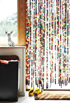 - Se puede utilizar como cortina de puerta, separador de habitación o decoración de pared.