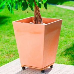 Los plantadores de terracota tienen sus seguidores. Enormes, no es probable que se vayan volando a la primera ráfaga de viento pero algunos temen la helada . También pueden formarse allí depósitos de caliza antiestéticos. Sin embargo, el material poroso tiene la ventaja de permitir el paso del aire y el agua. Algunos son simples y lisos, otros están decorados con bajorrelieves o esmaltados. La elección dependerá del estilo de su balcón.