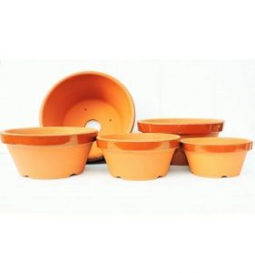 Las macetas de PVC están entre los primeros premios . Son resistentes a las heladas y livianas, lo que es una ventaja cuando están suspendidas. Sin embargo, pueden deformarse con el tiempo y la presión de la raíz, pero también se vuelven quebradizos. Las macetas más sencillas son de color terracota, pero las encontrarás en todos los tonos, desde el blanco al pastel y al fluorescente, ¡hay algo para todos! Tienen la ventaja de una mejor retención de la humedad que las referencias de la terracota.