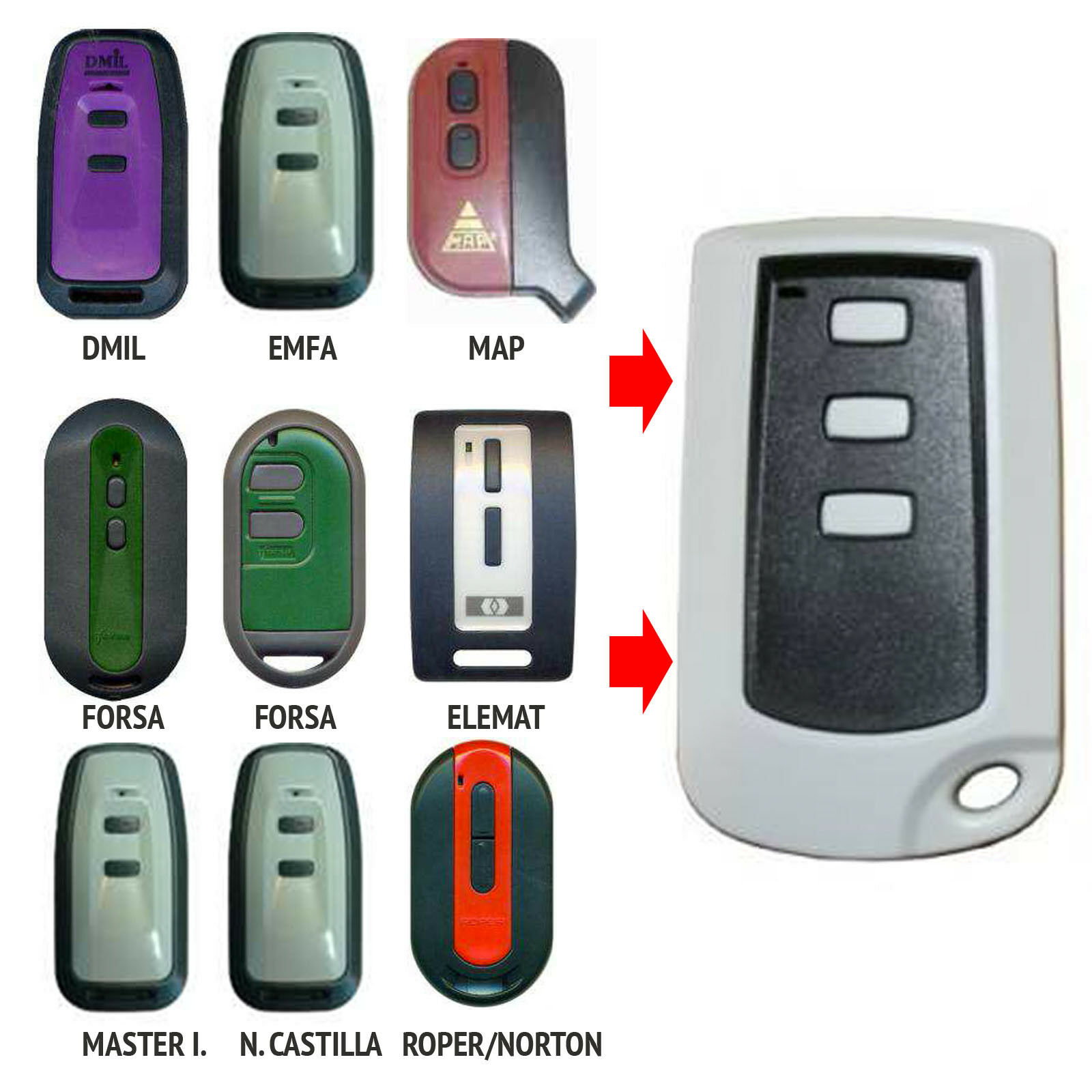 - NO COPIA mandos con frecuencia de CUARZO (26,995MHz - 40,665MHz), NO COPIA Clemsa MUTAN II ni V2 PHOX. Puede consultar los mandos compatibles en las imágenes.