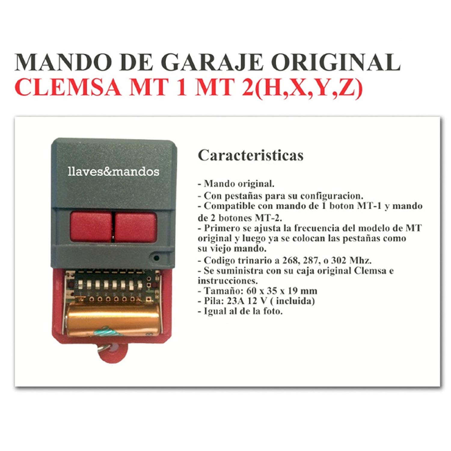 - NO SE TRATA DE UN MANDO UNIVERSAL. Solo compatible con CLEMSA MASTERCODE MV1 y CLEMSA MASTERCODE MV12, NO COMPATIBLE CON OTROS MODELOS DE CÓDIGO FIJO. Mando de garaje CLEMSA MASTERCODE con frecuencia 433 MHz, de código fijo. Sólo compatible con CLEMSA MASTERCODE MV1 y CLEMSA MASTERCODE MV12, no compatible con otros mandos de código fijo.