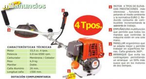 - Potente motor de gasolina 2 tiempos de 65cc y 4,9cv