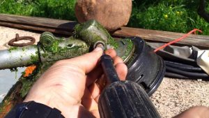 - La robusta bobina de hilo con unidad automática de contacto es apropiada para vegetación densa y césped alto. La cuchilla de 3 dientes de alta calidad se encarga de arbustos y maleza. El sistema de bloqueo del husillo permite cambiar fácilmente el equipamiento de corte.
