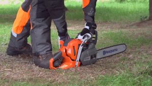 Conectado a un cable eléctrico que le suministra energía, permite todos los pequeños trabajos de proximidad, como la poda de pequeñas ramas o el corte de troncos de pequeño diámetro. Su peso ligero significa que cuando está equipado con un cable de extensión, puede trepar fácilmente a los árboles. Otra ventaja es que no tienes que mezclar y recargar el combustible constantemente.