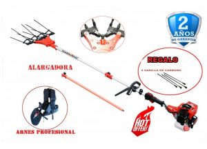 - ¡La mejor relación calidad precio!. Nuevo modelo mejorado y reforzado. Nuevo casquillo auto-engrasado. Funcionamiento finísimo y dura en cualquier condición. Vareadora con motor de 2 tiempos preparado para trabajo intensivo. Caja reductora ligera de sistema oscilante. Varillas de fibra de carbono en V que aumenta considerablemente el ancho de trabajo.