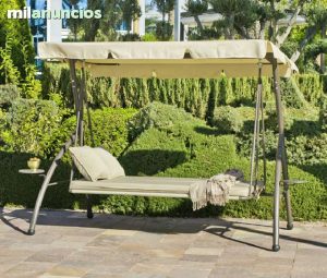 - Diseño único: Columpio tipo balancín con respaldo que se convierte en cama o hamaca, ofreciendo así diferentes usos en el mismo producto. El techo es ajustable y desmontable para protegerse de los rayos del sol.