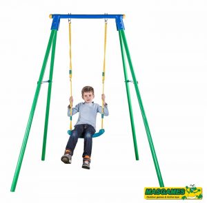 - ESTRUCTURA RESISTENTE: Marco metálico en forma de "A" para una estabilidad uniforme, lacado con pintura con recubrimiento en polvo para mayor resistencia a la intemperie y a la corrosión. Las patas cuentan con pies antideslizantes para proteger el suelo de daños y rayones y añadir estabilidad al balancín de exterior