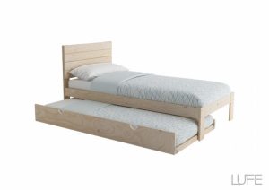 - Esta cama nido dispone de espacio para colocar dos colchones, una en la parte superior de medida 90x190 y la otra oculta en la parte central de medida 90x180 (no incluye los colchones ni somieres).