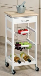 - Carrito multiusos: Para transportar platos al salón o al comedor. Mesa auxiliar con ruedas para el balcón o la terraza. Carro con ruedas y 2 niveles