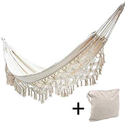 - Ya sea que su patio trasero necesite algo de jazz o si está buscando una nueva forma de relajarse en la playa, las hamacas son ideales para relajarse. Elija nuestras hamacas brasileñas de macramé con flecos Boho, tejidas a mano en tela de lona de algodón de 320 g / m2 de grosor y cuerda de encaje con flecos. , cómodo duradero hermoso y romántico y atractivo.