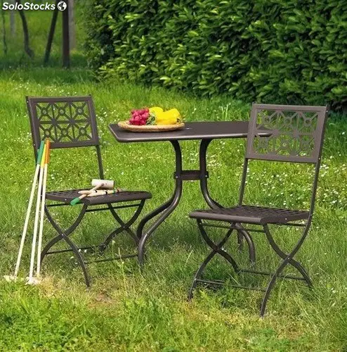 • Set bistro para jardín, terraza, balcón que consiste en 1 mesa y 2 sillas