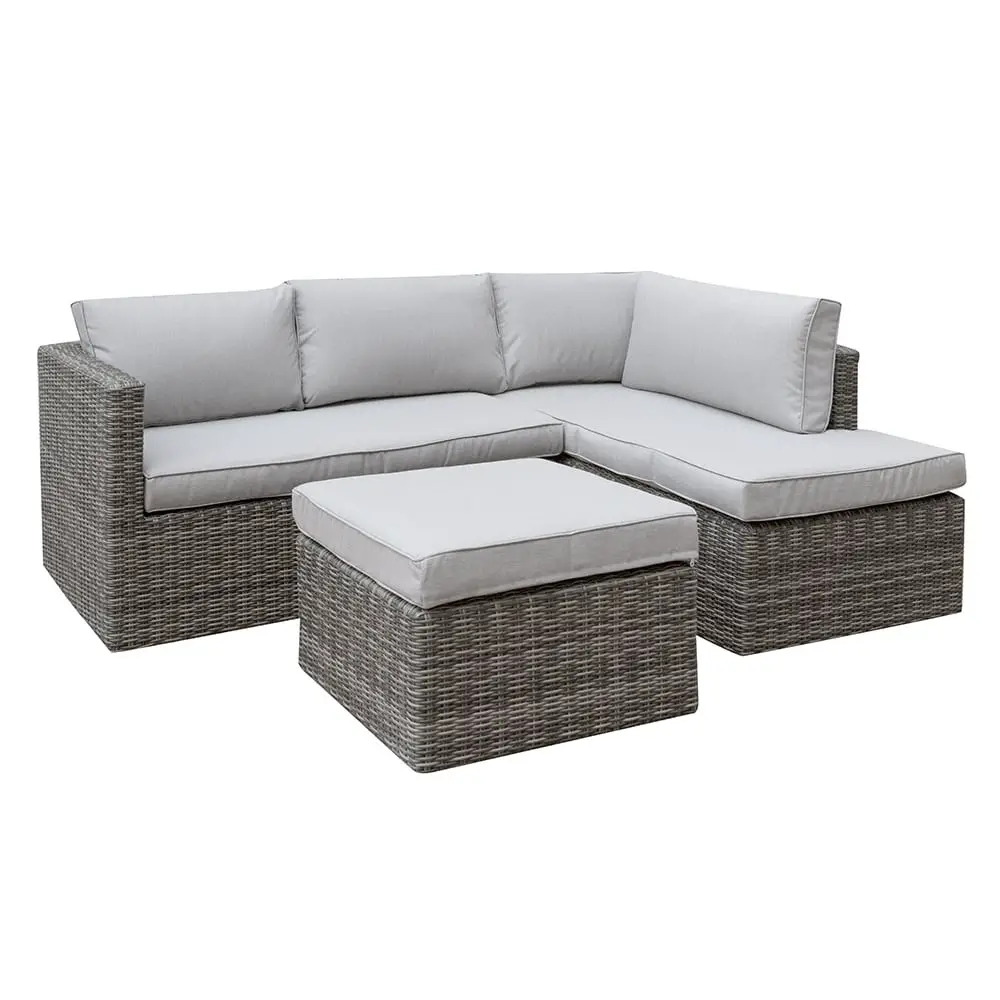 - Un sofá de 2 plazas se puede utilizar como complemento de un conjunto de muebles existente o como un mueble individual con una sección para los pies en el área exterior e interior