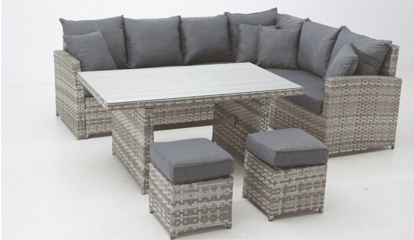 - Los tonos de color tranquilos de este conjunto de muebles para exterior y las líneas suaves de su acabado aseguran que pueda combinarse maravillosamente con cualquier entorno, ademas ofrece niveles de confort premium tanto para sus huéspedes como para toda la familia
