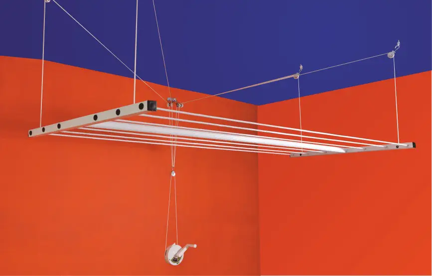 - PRÁCTICO (CON MANIVELA): Tendedero Cuncial Tezno-Techo Con Sistema Sube y Baja de Manivela que permite Ahorra y Aprovechar Espacio.