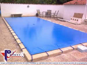 - Cobertor para piscinas rectangulares de medidas 300 x 200 cm y con voladizo de 20 cm; Peso cobertor: 2 kg