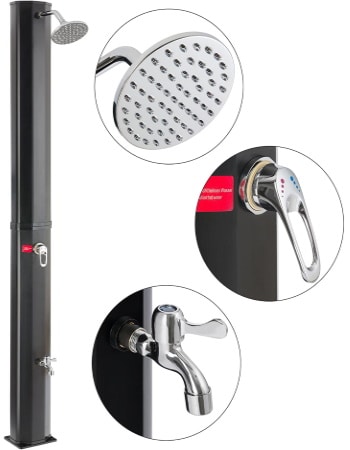 Si sueña con duchas al aire libre, esta magnífica ducha solar para piscina seguramente lo seducirá. Porque tiene todas las características esenciales de una buena ducha exterior, con una gran capacidad de agua caliente, calefaccionada de forma gratuita, un rociador giratorio a voluntad, un grifo secundario para enjuagar los pies, … en fin, tiene todo lo necesario para pasar momentos sublimes al aire libre, al aire libre, ¡tanto mágicos como agradables!