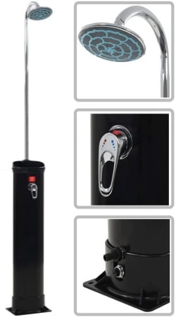 - la ducha solar exterior para piscina AREBOS 35L (color NEGRO, 35 litros y 216 cm de altura)