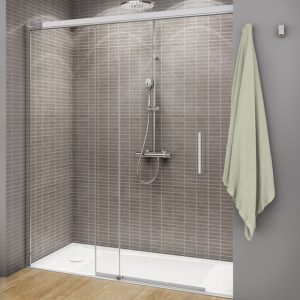 - Mampara de ducha fija reversible: se puede montar con el fijo a la derecha o a la izquierda.
