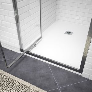 - El perfil de sellado vierteaguas está diseñado para evitar fugas de agua en el hueco que hay entre la parte inferior de la puerta de cristal de la mampara y el plato de ducha o la bañera.
