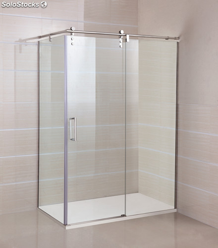- Mamparas ducha vidrio templado de seguridad de 6 mm transparente. Altura: 195 cm. Aluminio anodizado en cromo.