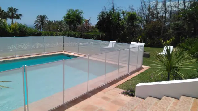 - Barrera de seguridad transparente para piscinas, de fácil instalación y sistema modular de 3 metros