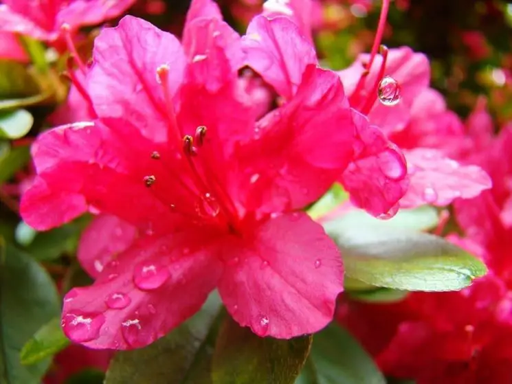 El bonsái de azalea debe tener el suelo siempre húmedo, por lo que nunca debes dejar que el sustrato se seque por completo: en la temporada de verano, en particular, debes tener mucho cuidado porque un fuerte calor seco podría hacer que nuestro bonsái se deteriore y muera en poco tiempo. Tan pronto como veamos el suelo seco, debemos regarlo abundantemente, pero sin estancamientos. Lo ideal sería colocar una capa de akadama en la base de la maceta, un material perfecto para el drenaje de los bonsáis, especialmente aquellos como la azalea, que necesita agua pero teme la pudrición de las raíces. La llamada tierra roja con bolas, precisamente por estar formada por gránulos de una determinada tierra volcánica, consigue retener el agua sin mojar las raíces. También hay que recordar que la azalea es una planta acidófila, por lo que no tolera el calcio, los suelos calcáreos y especialmente el agua calcárea. Por este motivo, para el riego es necesario utilizar agua destilada o corregida con un producto para plantas acidófilas, que restablezca el nivel adecuado de acidez del suelo.