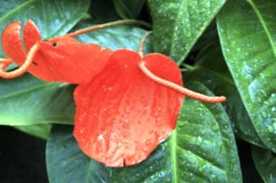 Los anthurios son plantas de crecimiento lento que producen hojas planas en forma de pala y flores extrañas y coloridas. La parte más notable de la flor es la espata, que en realidad es una sola hoja que varía de color desde el blanco leche hasta el burdeos intenso. Por encima de la espátula se encuentra el espádice, una espiga alta y estrecha de varios colores que es la flor real.