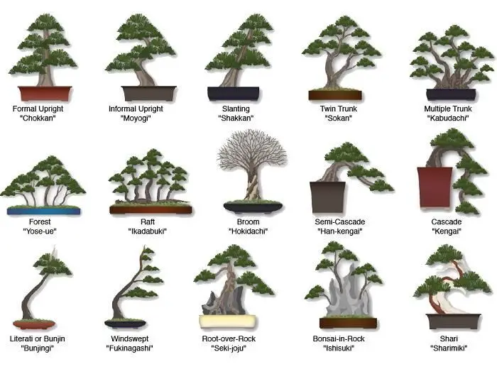 La antigua práctica de los bonsáis eleva la poda a una forma de arte. Las técnicas de poda de los bonsáis no sólo reducen el tamaño de la planta sino que se esfuerzan por imitar las formas naturales de los árboles que crecen en las regiones montañosas y duras donde se originan los bonsáis.