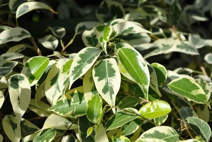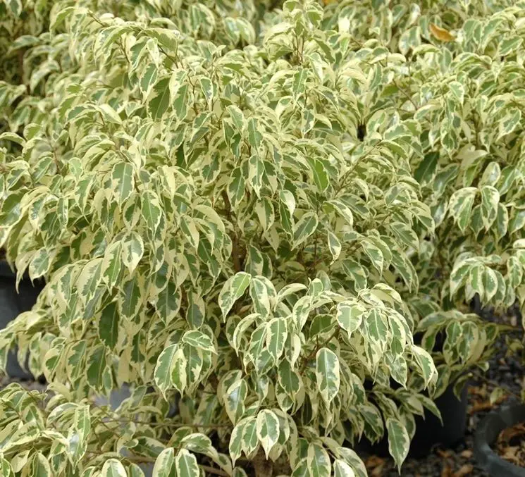 El ficus benjaminaes un árbol de hoja perenne originario del sudeste asiático, perteneciente, como todas las especies del género Ficus, a la familia Moraceae. A nivel espontáneo, la planta alcanza unas dimensiones considerables, incluso treinta metros, mientras que en los viveros sus «alturas» se mantienen entre los dos y los cinco metros. La característica principal del benjamina ficub son sus hojas pequeñas, ovaladas y puntiagudas, de color verde coriáceo o veteadas de blanco. El rayo claro se da en la variedad denominada estornino, siempre perteneciente al Ficus Benjamina. Las flores de la planta se agrupan en pequeñas inflorescencias llamadas syconia. En realidad, los syconia son los frutos que aparecen como agrupaciones florales. Estos aparecen en verano, porque la planta crece muy bien a altas temperaturas, siendo una especie típica de países con clima tropical. Es posible que las flores no aparezcan en especies cultivadas en apartamentos. Las características culturales del ficus beniamina son, sin embargo, similares a las de las demás variedades del género ficus, aunque pueden existir ligeras variaciones en cuanto a la temperatura ideal para el crecimiento de la planta. Ficus benjamina se desarrolla bien a temperaturas entre 24 y 30 grados, mientras que otras variedades de ficus necesitan temperaturas más bajas.