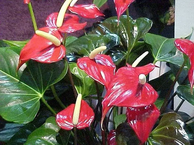 Anthurium es una planta que necesita un suelo que debe ser de naturaleza orgánica, mezclado con turba y sphagnum picado. El anturio es una planta que debe regarse regularmente durante el período de floración, en la temporada de verano. Los riegos deben diluirse en los períodos de estasis vegetativa. El anturio es una planta que debe ser fertilizada en el período de mayo a septiembre, preferiblemente utilizando fertilizantes específicos disponibles en el mercado en comercios especializados o en los sectores especiales de los grandes supermercados. Las cochinillas y los pulgones son los principales y más peligrosos enemigos de esta planta, que nació en las Indias Orientales. Las cochinillas y los pulgones pueden dañar las láminas de las hojas si atacan la planta. Las hojas de la planta de anthurium son lanceoladas, con una longitud de entre 15 y 40 centímetros.