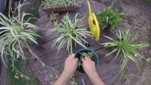 - Si tiene un crecimiento abundante de follaje en sus plantas de araña, tanto que las arañas cuelgan al alcance del gato, puede ser necesario podar las plantas de araña de nuevo o dividir las plantas.