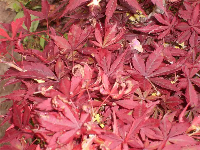 La verticilosis de los arces está bastante bien documentada, las enfermedades bacterianas no lo están, y sin embargo son comunes. Tan pronto como llueve mucho en otoño e invierno Pseudonomas syringae se desarrolla en las extremidades y crea manchas oscuras que siguen creciendo a medida que descienden; una rama tras otra muere. La fitófora también crea manchas, pero es una enfermedad que se desarrolla en el verano. Estas dos enfermedades conocidas por los arboricultores no están suficientemente reconocidas en los arces. Son tanto más graves cuanto que cuando la planta se debilita, dos enfermedades pueden desarrollarse juntas y desdibujar los síntomas. La combinación de bacteriosis/verticilosis es la más grave para un Acer. Las variedades de Redwood palmatum son las más susceptibles, el sangokaku es el más citado. Las variedades arakawa, deshojo y kiyohime son valoradas por su vigor y menor susceptibilidad, pero no tienen secoya.