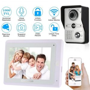 - 【Monitor LCD de 7 pulgadas y mini timbre】 Monitor de pantalla TFT de 7 pulgadas con diseño delgado, operación de tecla táctil, manos libres, compatible con Wifi para conectarse a Internet. Timbre exterior con funda impermeable, sensor de infrarrojos incorporado y cámara 1080P, gran angular 110º, visión nocturna, impermeable, antipolvo y antivandálico. Puede conectar todas las cerraduras electrónicas de 12V.