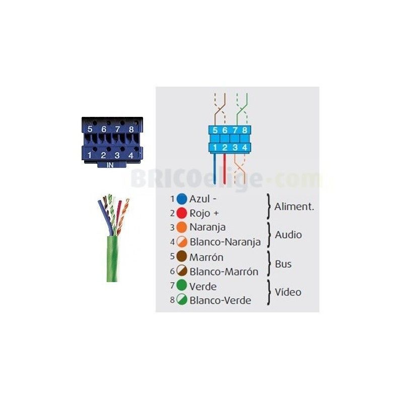 - La instalación se puede realizar con el siguiente tipo de cableado: UTP CAT5 / 5 hilos / 3 hilos + Coaxial (video)