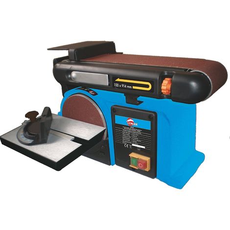 - Su potencia es de 550 W (motor asíncrono), Dimensiones del abrasivo (L: 914 x 100 mm), diámetro del disco 200 mm.