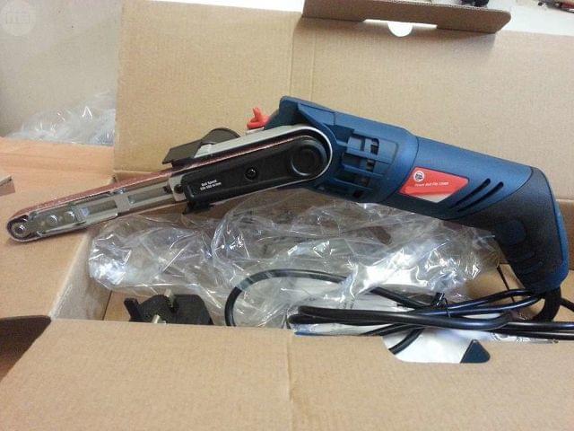 - Su potencia es de 550 W (motor asíncrono), Dimensiones del abrasivo (L: 914 x 100 mm), diámetro del disco 200 mm.