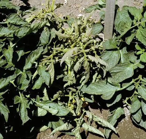 Si tiene dudas sobre si una planta ha contraído el virus, una revisión rápida es ver si necesita agua. Remoje la tierra alrededor de la planta enferma temprano en la noche y luego revísela en la mañana. Si se ha levantado durante la noche, es probable que sólo haya sido por el estrés de la humedad, pero si no, lo más probable es que la planta tenga la parte superior rizada y deba ser eliminada.